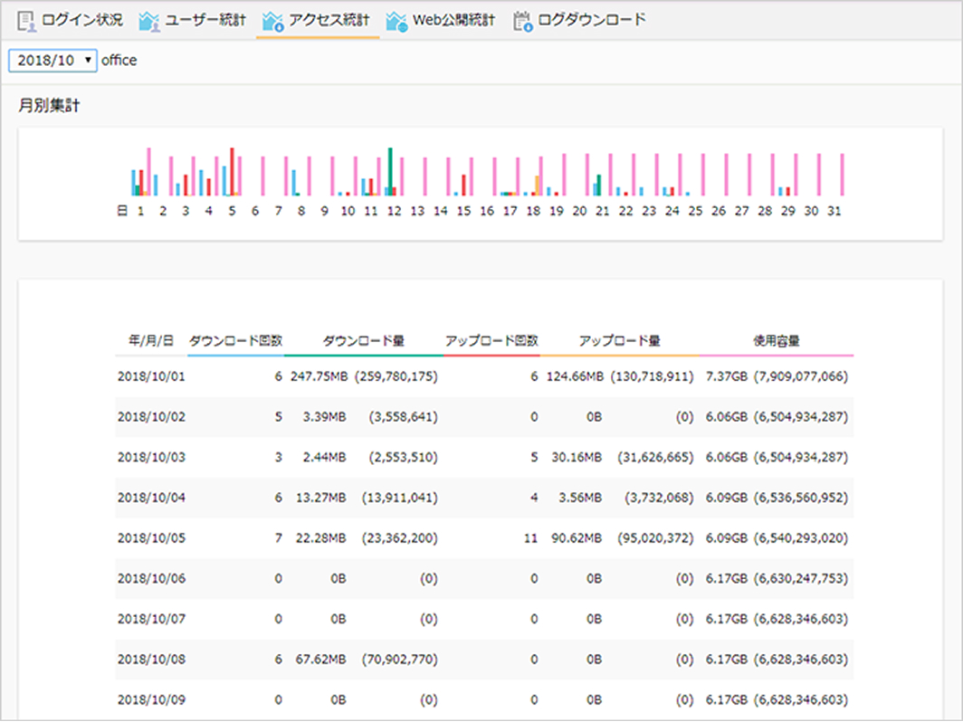 ファイルのアップロード、ダウンロードやファイル共有機能などオンラインストレージサービスの基本的な機能から、法人専用サービスならではの管理機能やセキュリティ関連機能を備えています。また、iOS/Android専用アプリもご用意しており、スマホやタブレット端末でも安全なファイル共有を実現できます。